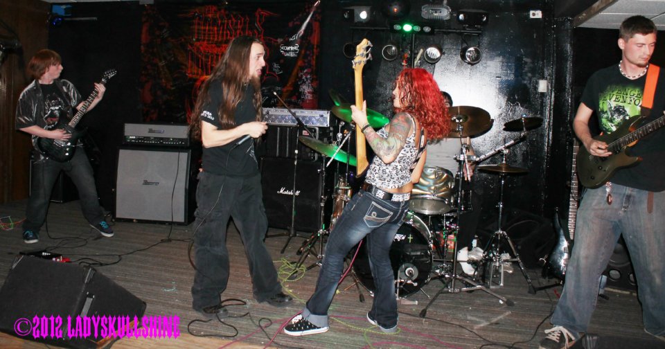 I was introduced to Apocryfiend back in 2010 or 2011. At some point early on, they asked me to manage the band. I was new to the whole metal music scene, but I had management experience, so I jumped in head first. That’s when I needed to come up with a name for me. A few friends and I did some brainstorming and came up with LadySkullshine.